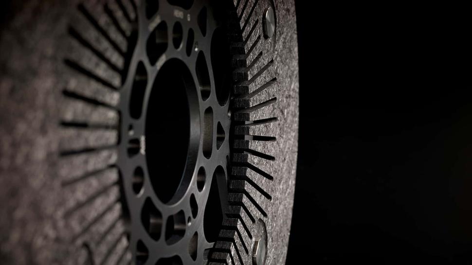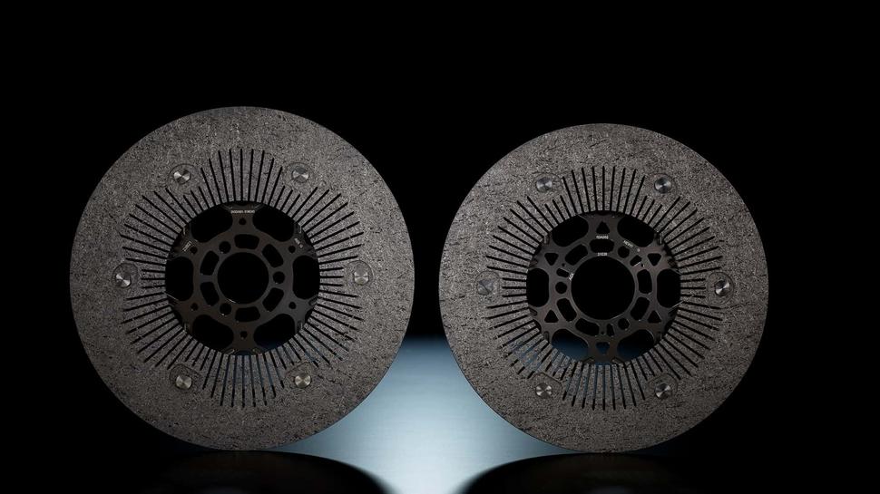 Сами диски изготовлены из двух различных материалов, карбона и стали. Они представлены в пяти размерах, в зависимости от материала: карбоновые используются только для переднего колеса. Среди них - два варианта диаметром 320мм, три варианта на 340мм и один на 355мм, и каждый из них имеет разные свойства и используется на разных трассах и по разным причинам.